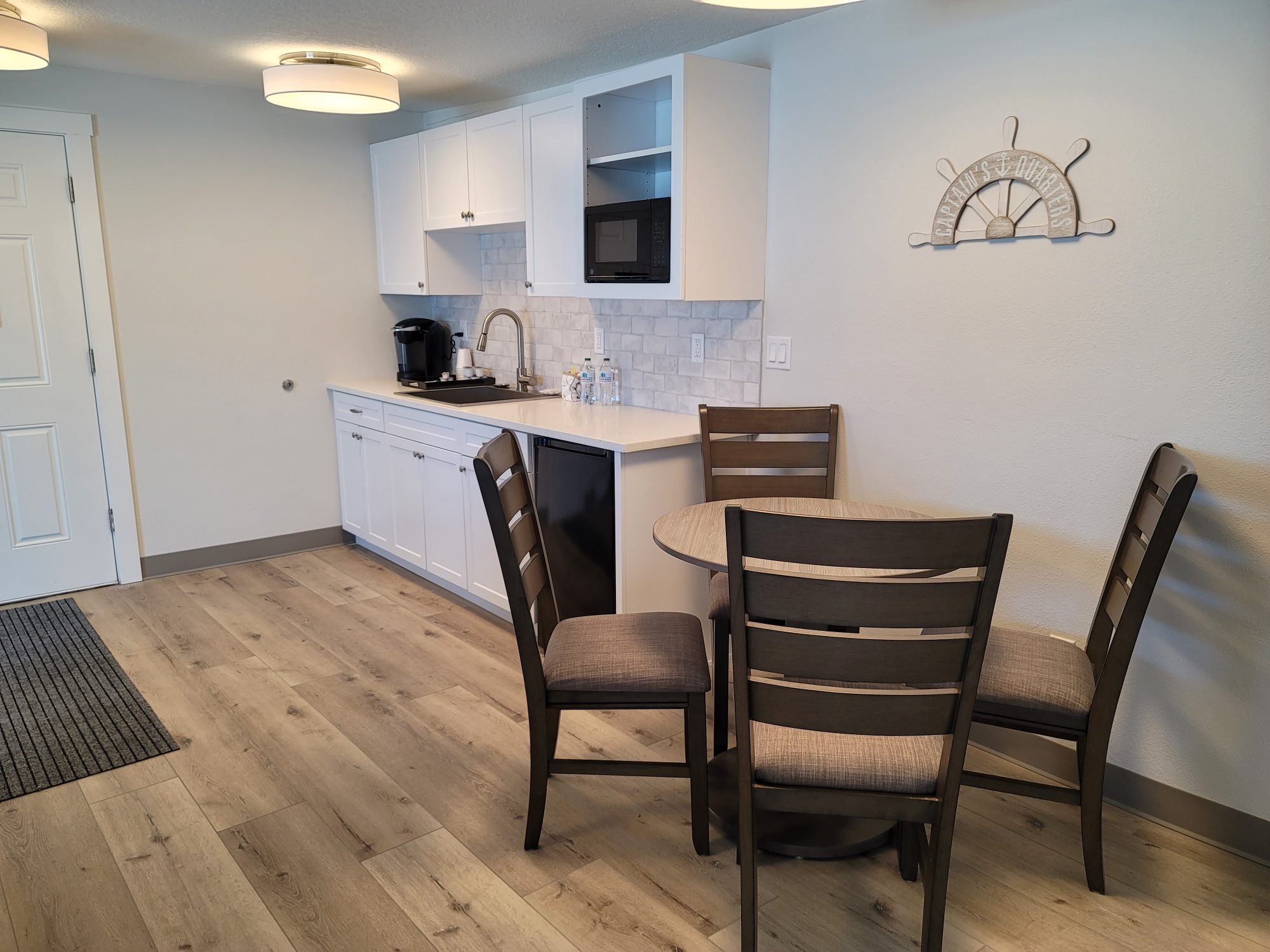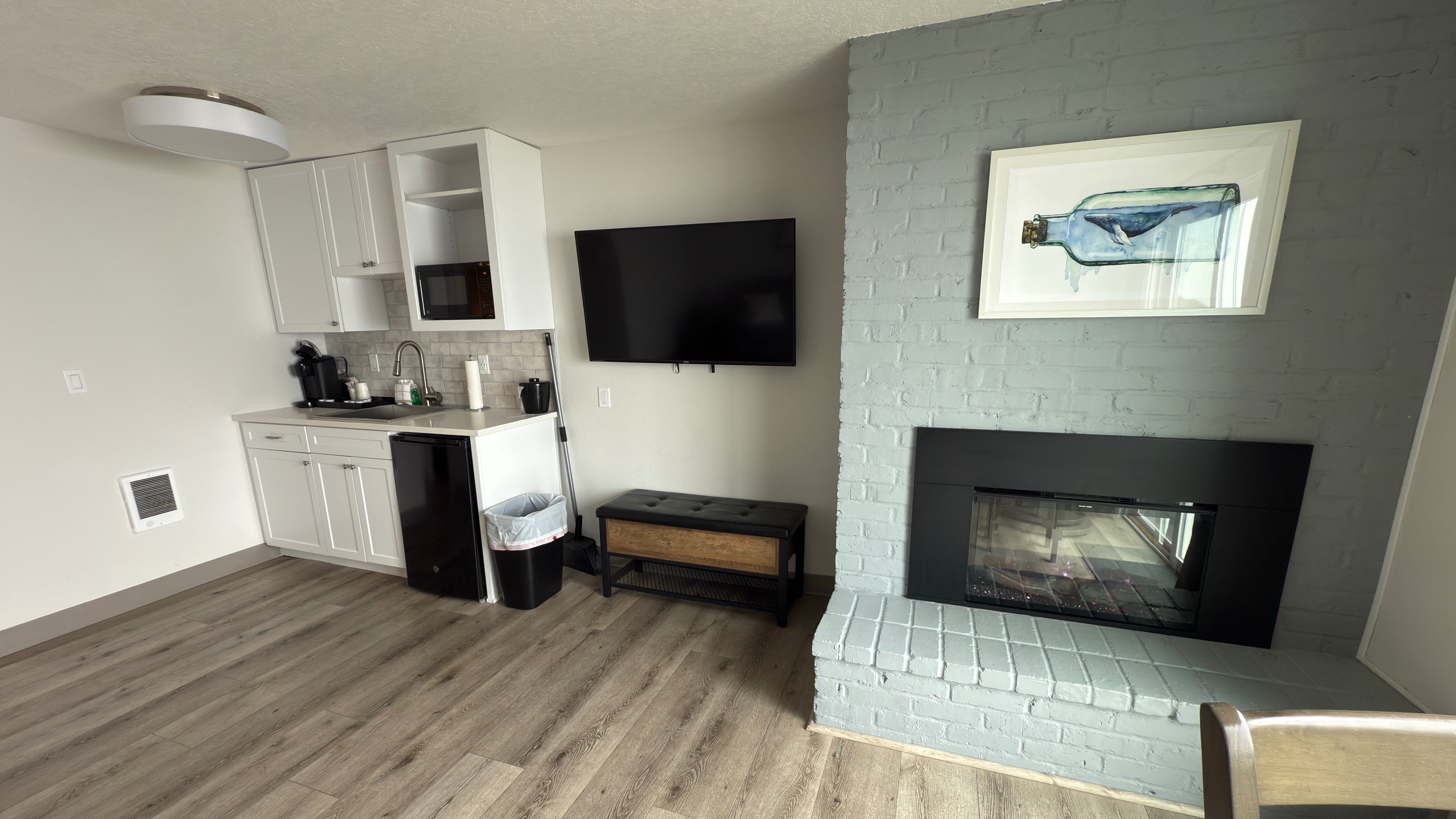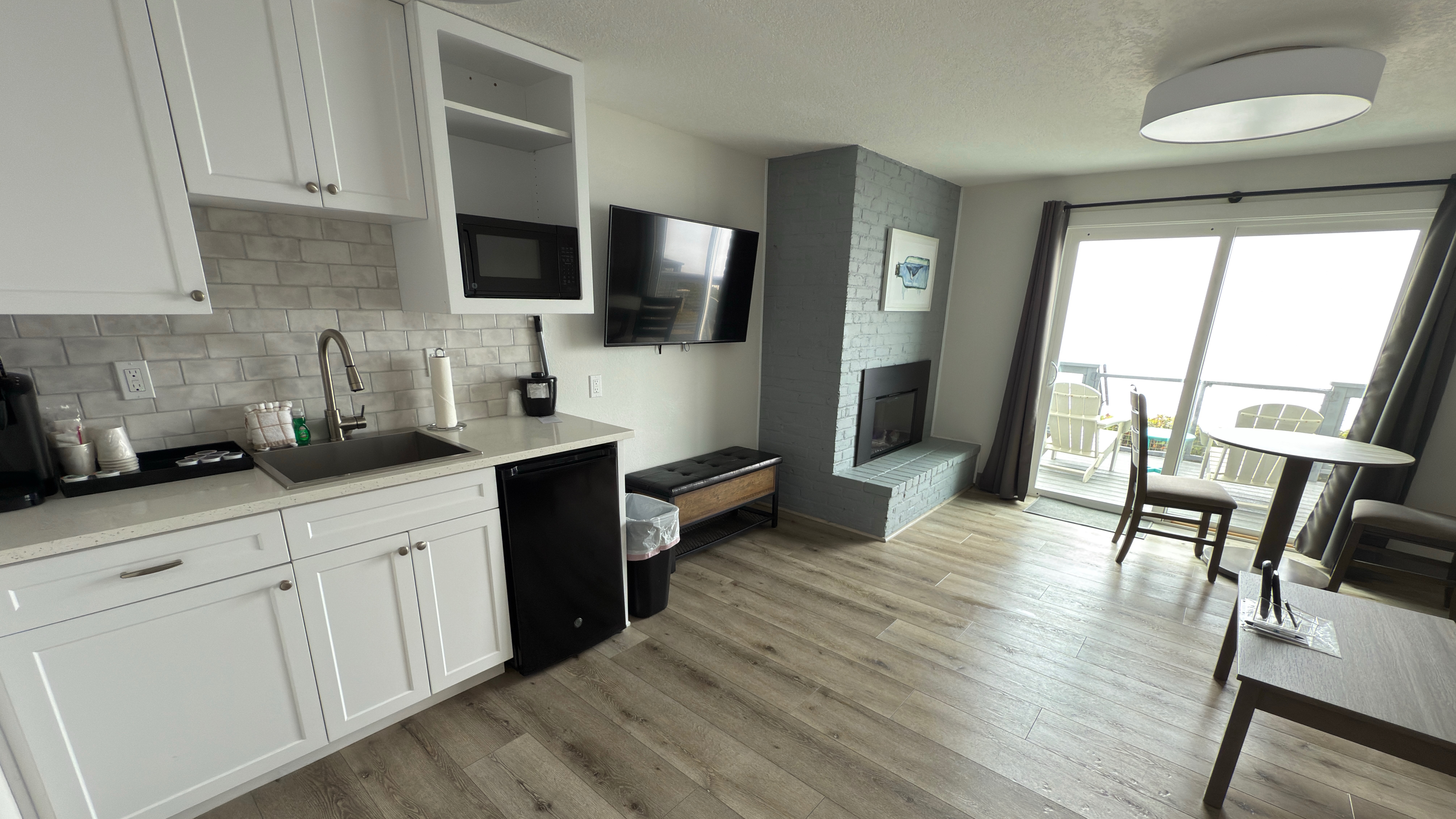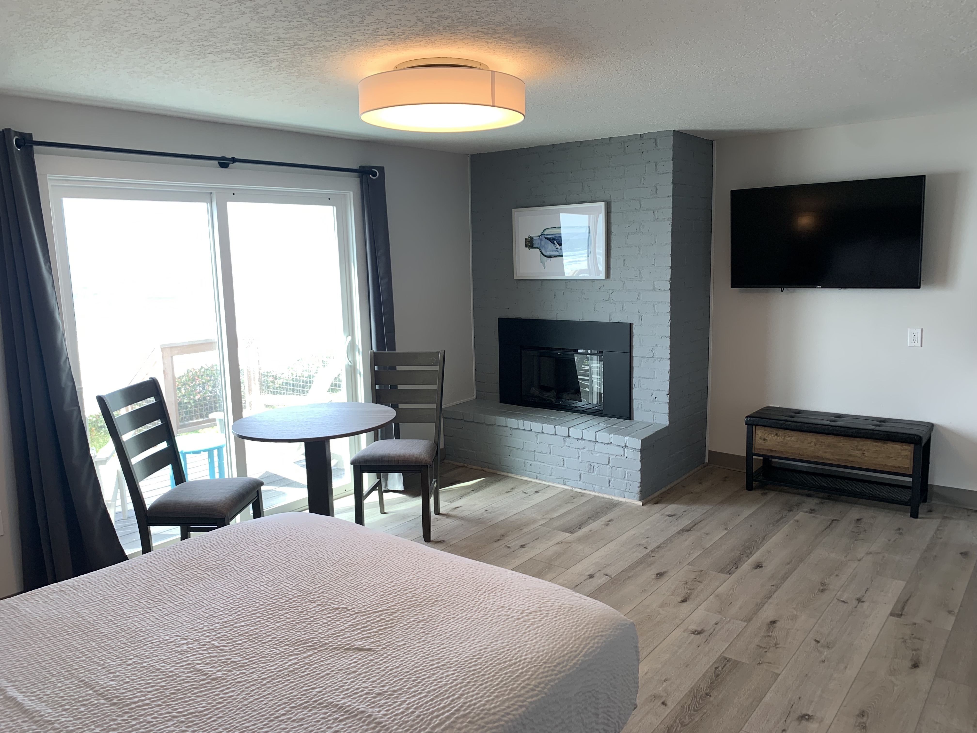 All our rooms offer full kitchenettes, complementary WiFi and flat screen TVs with cable. We have private beach access and free on-site parking. Select rooms have semi-private decks and fireplaces.