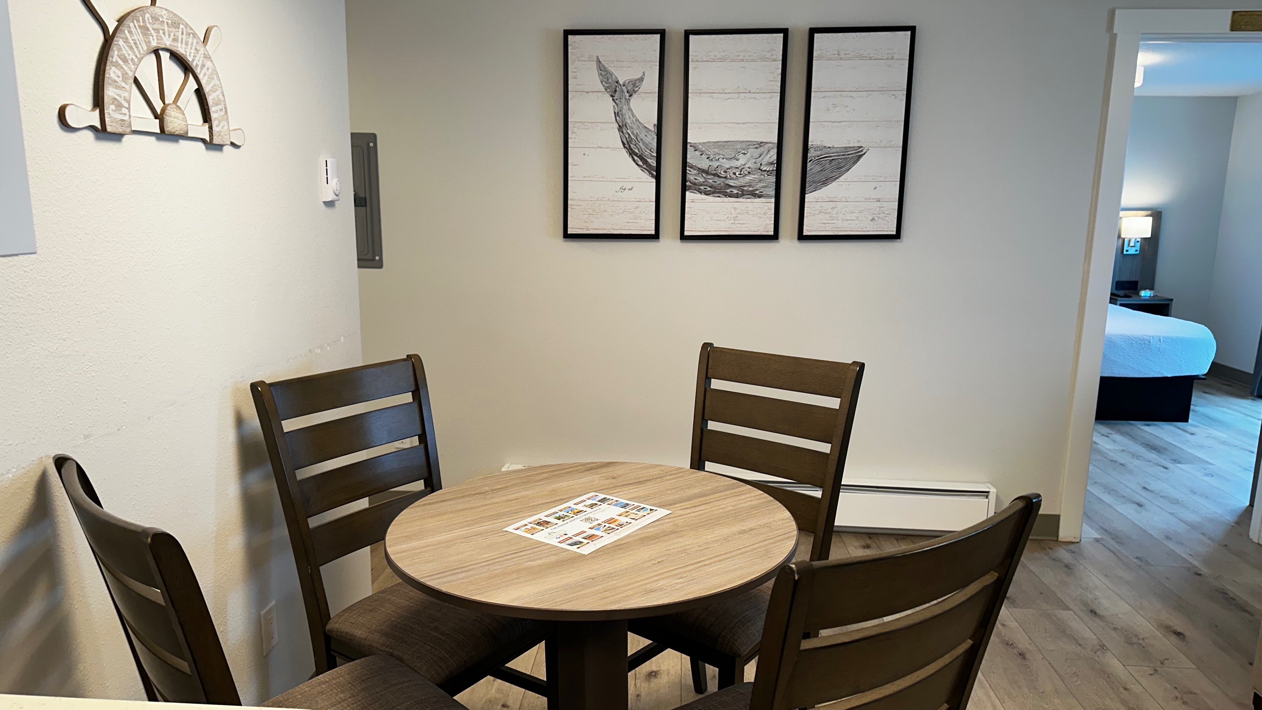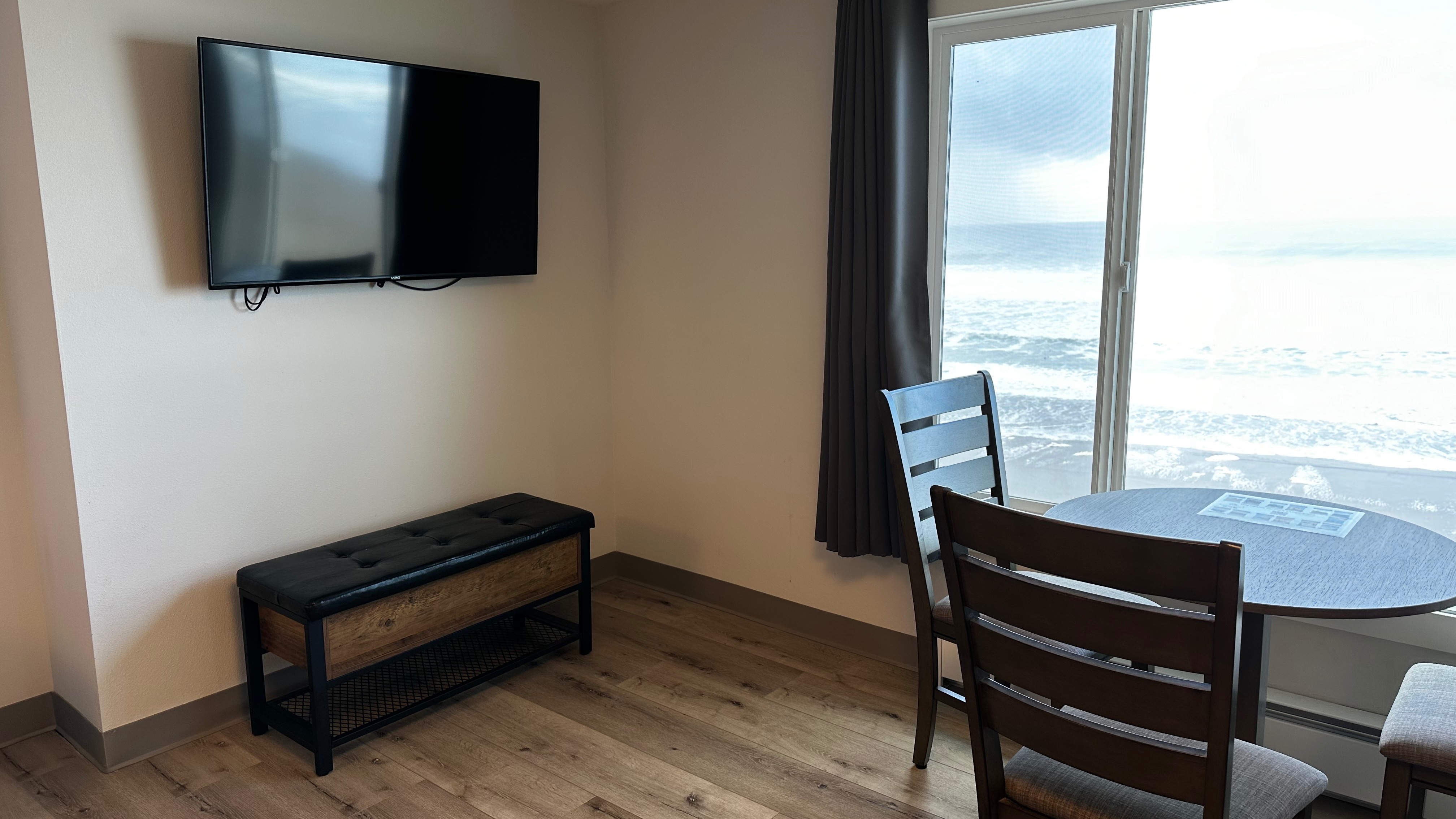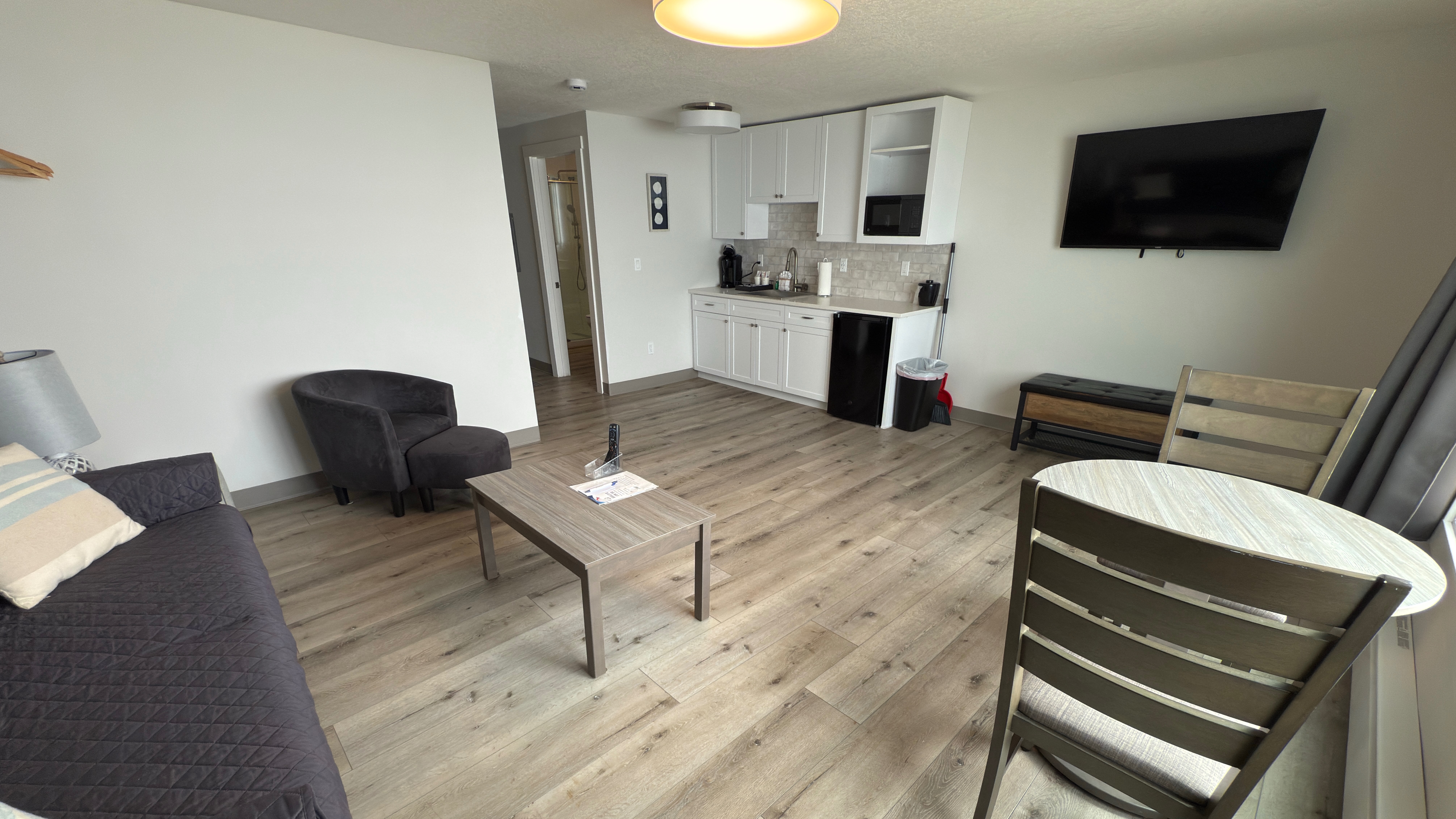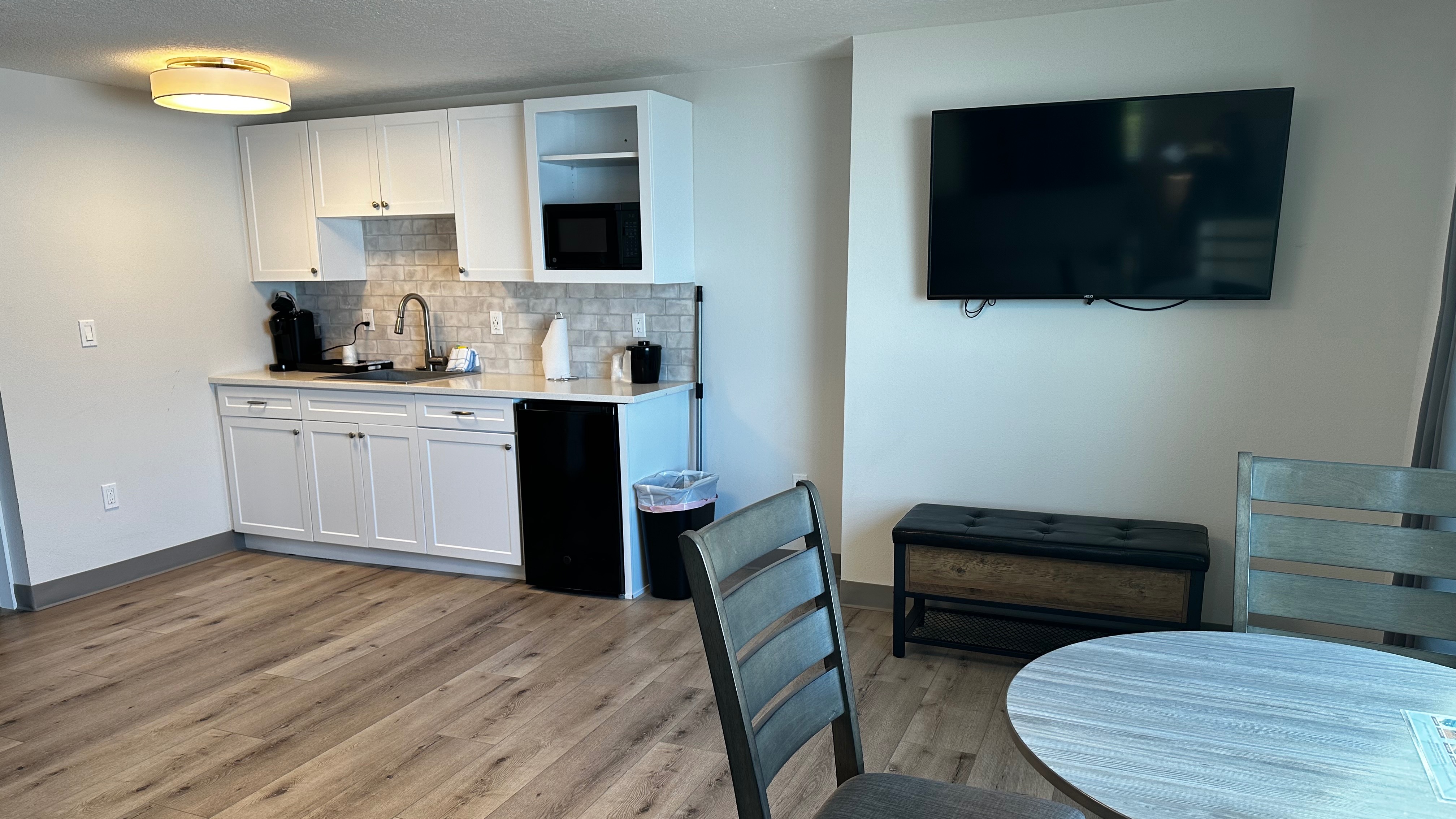 All our rooms offer full kitchenettes, complementary WiFi and flat screen TVs with cable. We have private beach access and free on-site parking. Select rooms have semi-private decks and fireplaces.