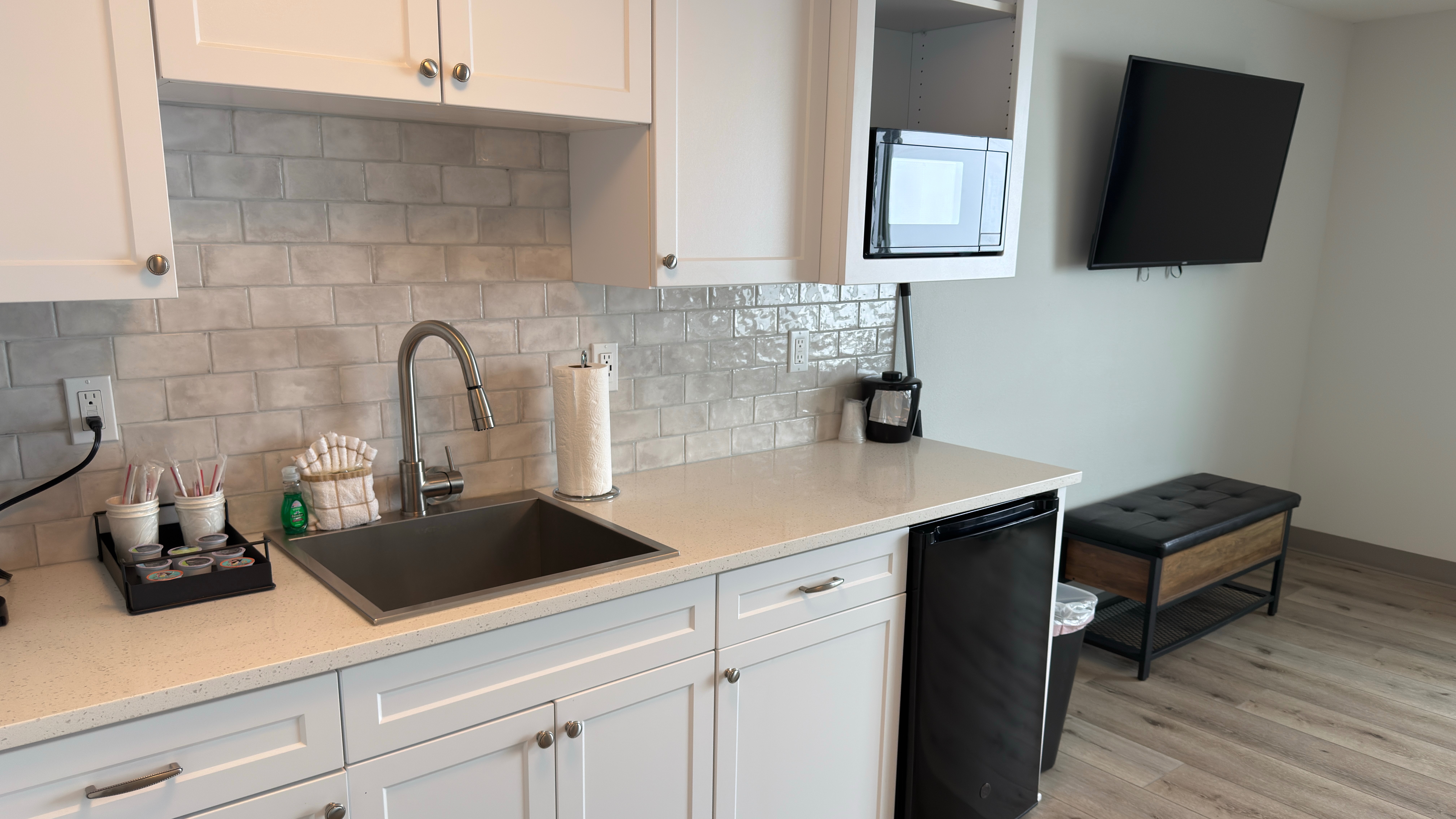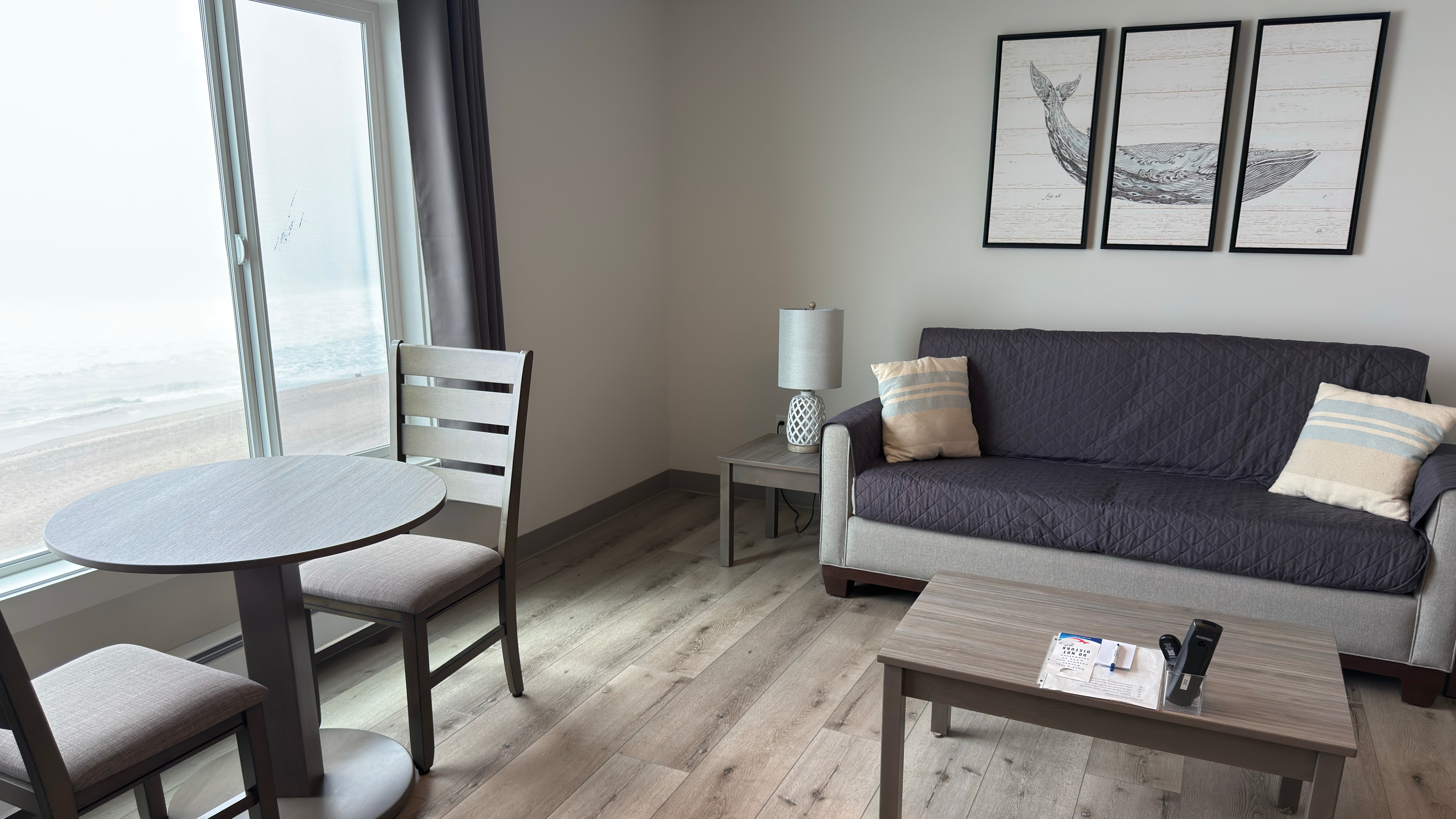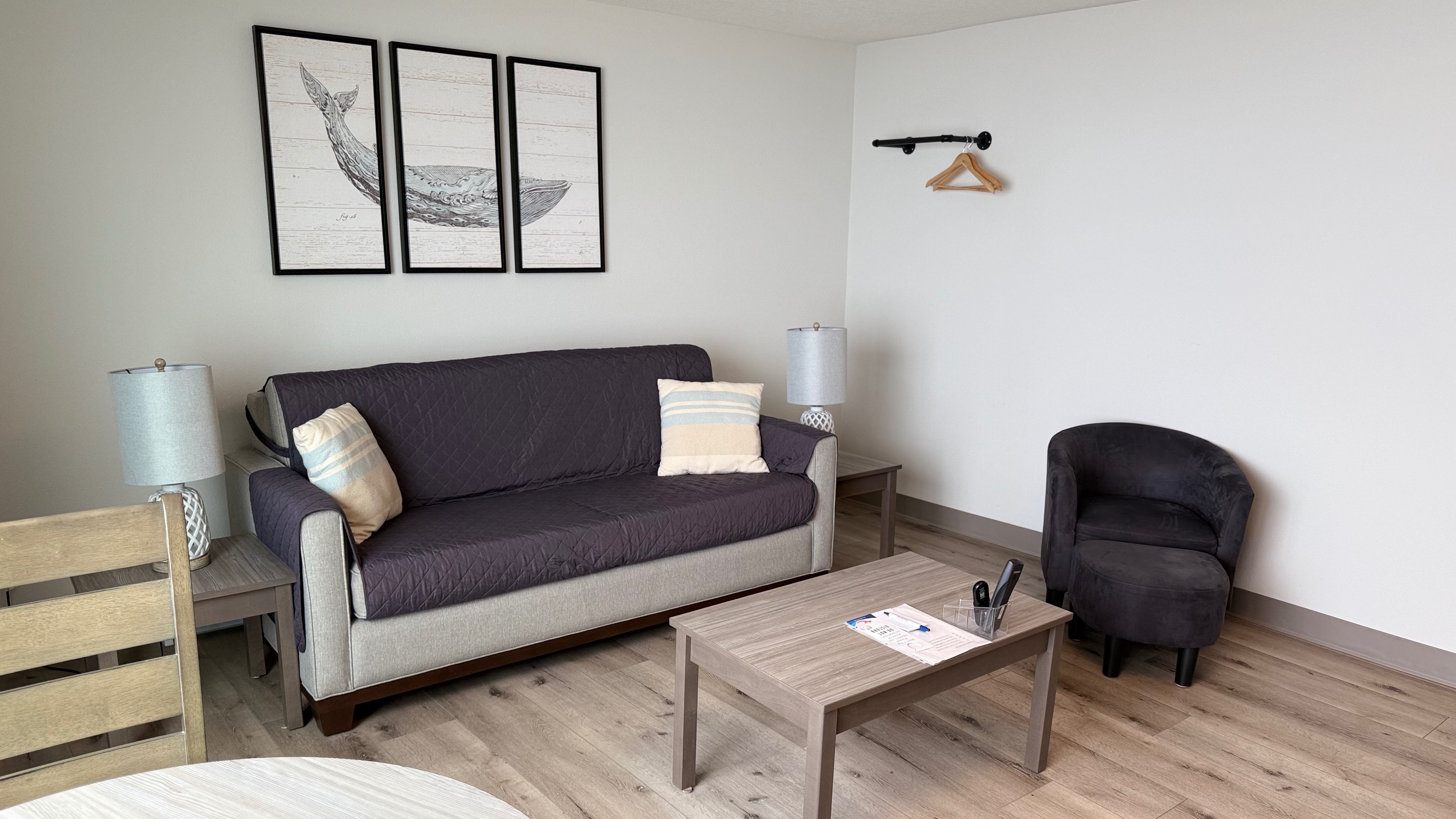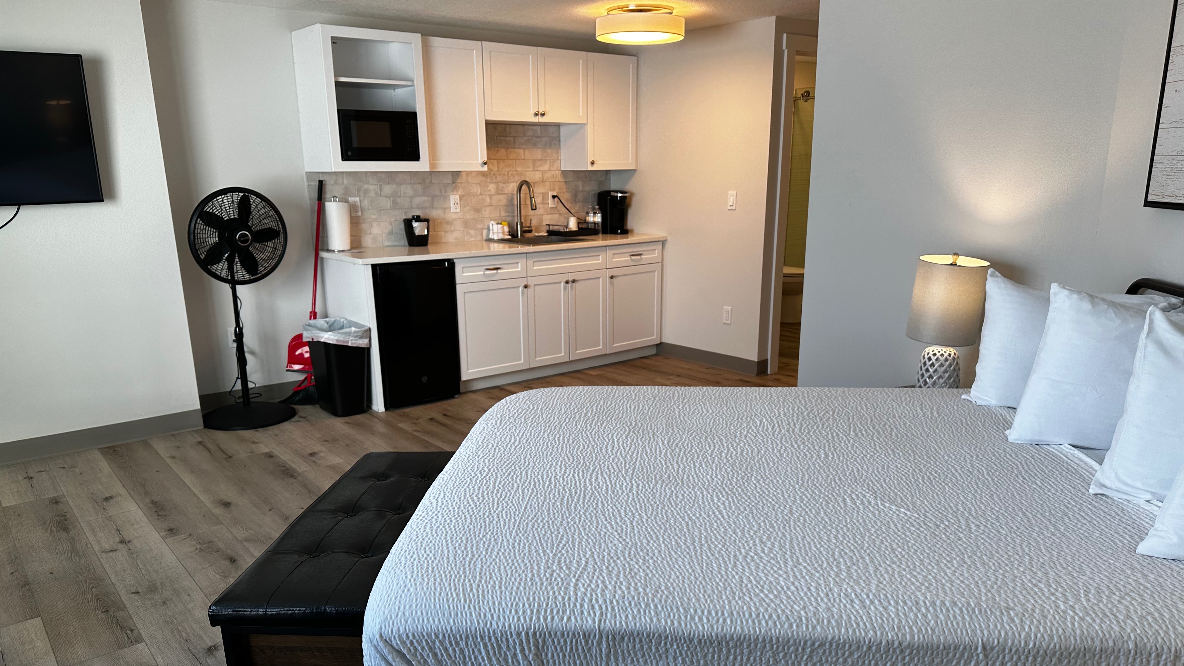 All our rooms offer full kitchenettes, complementary WiFi and flat screen TVs with cable. We have private beach access and free on-site parking. Select rooms have semi-private decks and fireplaces.